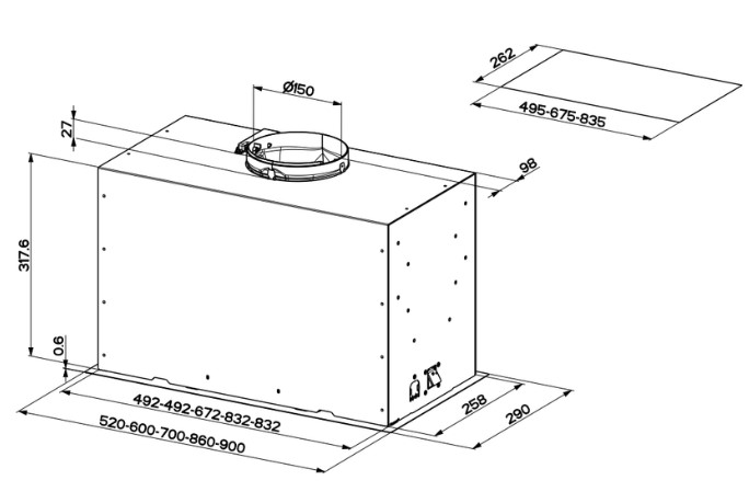 Bertazzoni KIN86MOD1XB/2 - схема с размерами версия 2 к вытяжке на разных языках на Hausdorf