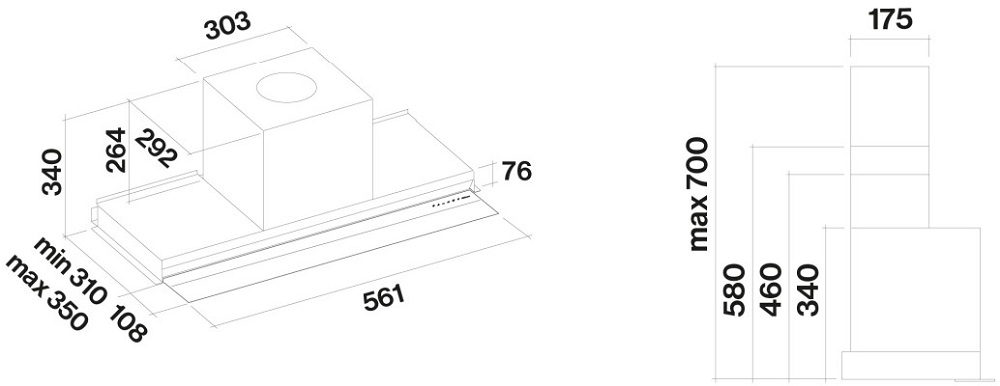 Falmec VIRGOLA TOUCH BLACK 60 - схема с размерами к вытяжке на разных языках на Hausdorf