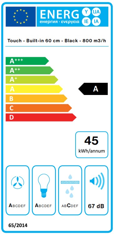 Falmec VIRGOLA TOUCH BLACK 60 - энергетический лейбл к вытяжке на разных языках на Hausdorf