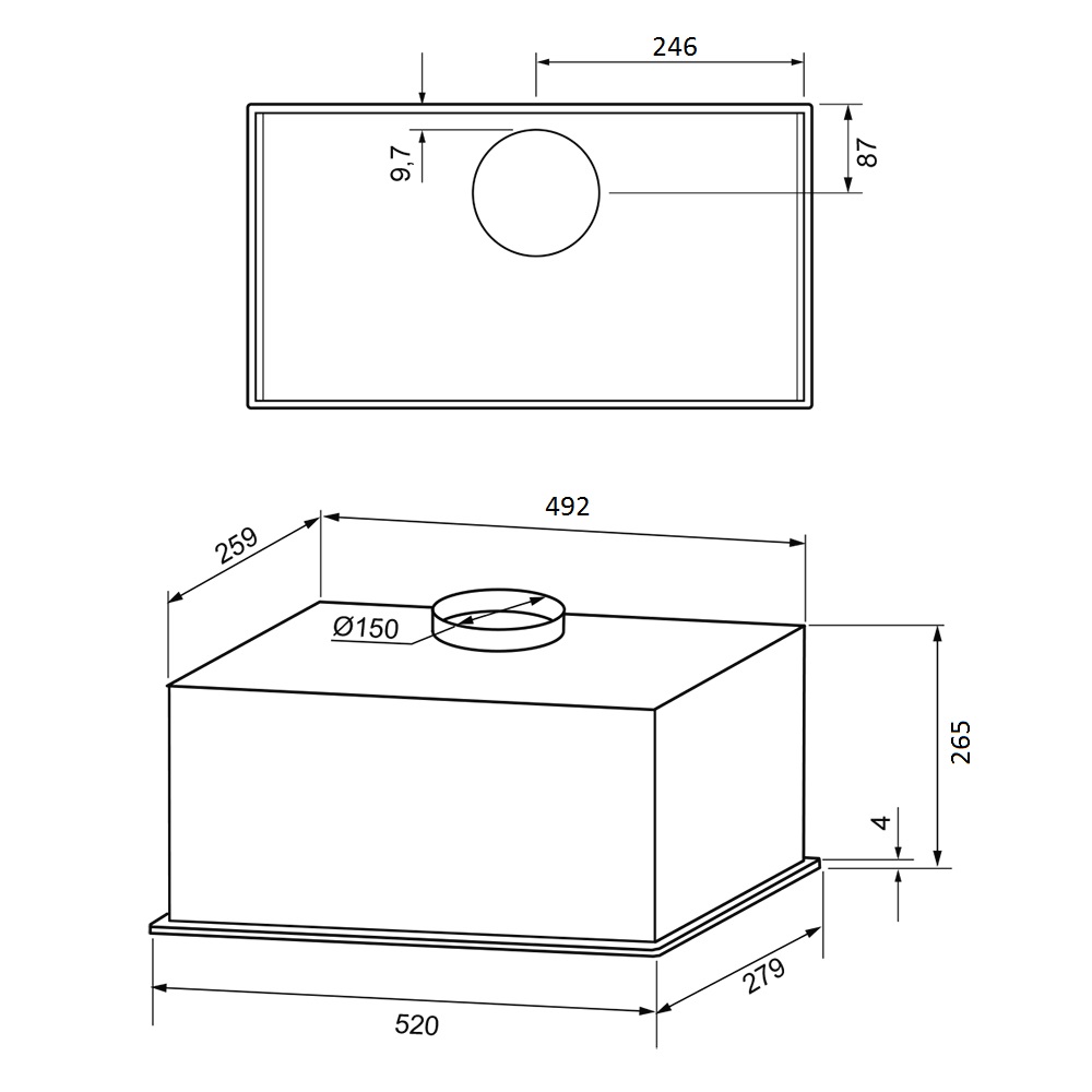 KRONA ASPEN 600 BLACK SGC - схема с размерами версия 2 к вытяжке на разных языках на Hausdorf