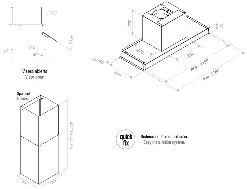 Pando TIL/120 IX V.1250 SEC - схема встраивания с размерами к вытяжке на разных языках на Hausdorf