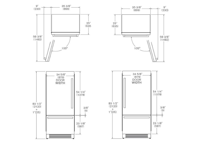 Bertazzoni REF905BBLPTT/24 - схема с размерами версия 3 к холодильнику на разных языках на Hausdorf