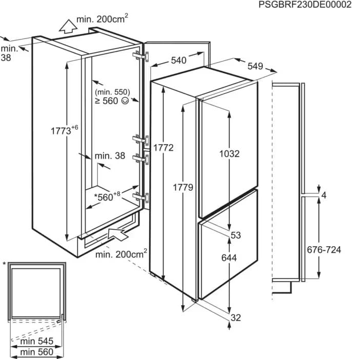 Electrolux RNT2LF18S - схема встраивания к холодильнику на разных языках на Hausdorf