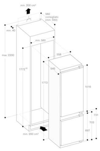 Gaggenau RB282306 - схема встраивания с размерами к холодильнику на разных языках на Hausdorf