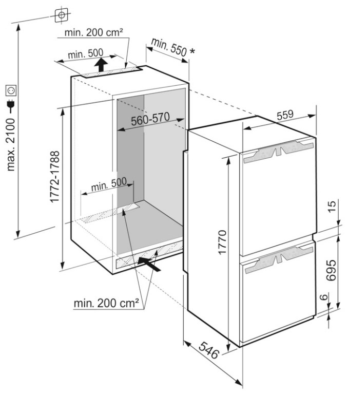 Liebherr ICBNdi 5153 - схема встраивания с размерами к холодильнику на разных языках на Hausdorf