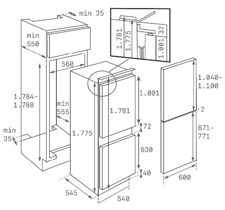 Teka CI3 320 - схема встраивания к холодильнику на разных языках на Hausdorf