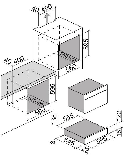 Barazza 1CEEVS - схема встраивания с размерами к подогревателю на разных языках на Hausdorf