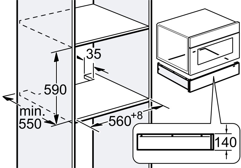 Gaggenau WS461102 новый с витрины - схема встраивания с размерами к подогревателю на разных языках на Hausdorf