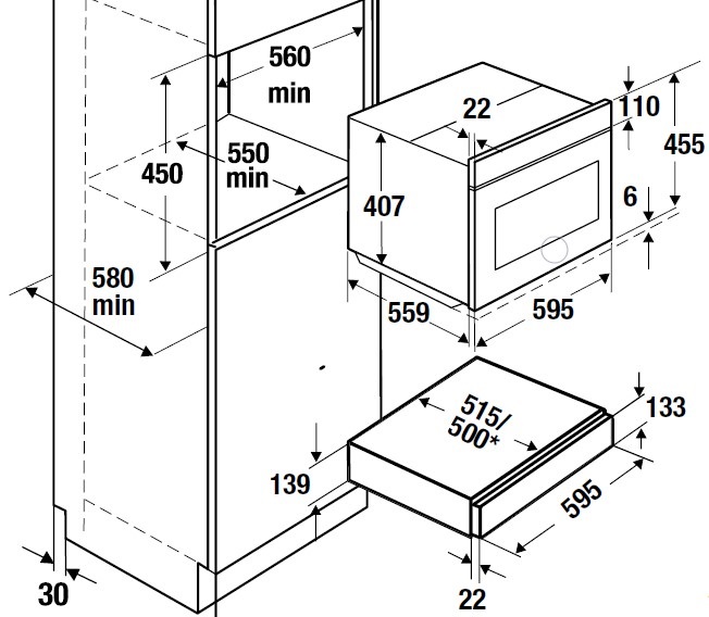 Kuppersbusch CSW 6800.0 GPH - схема встраивания с размерами к подогревателю на разных языках на Hausdorf
