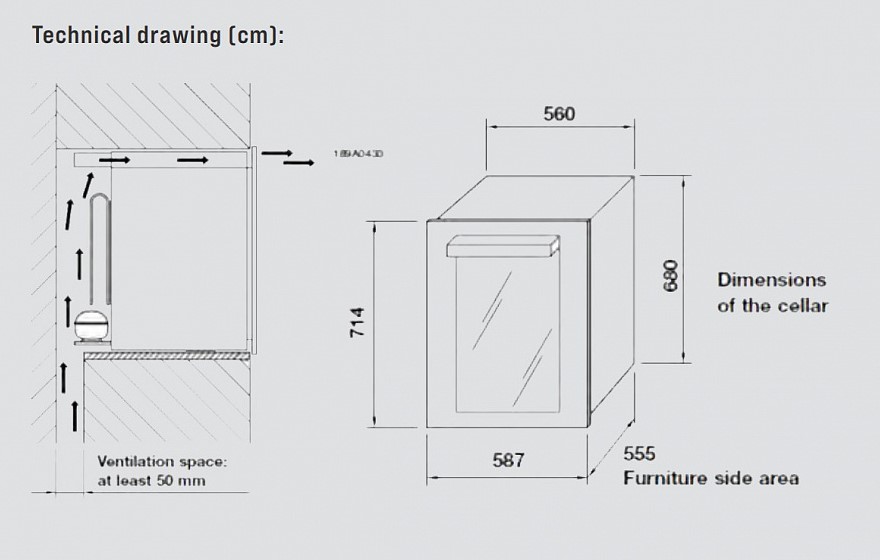Lofra ZBRNM36T BRASS две зоны - схема с размерами к винному шкафу на разных языках на Hausdorf