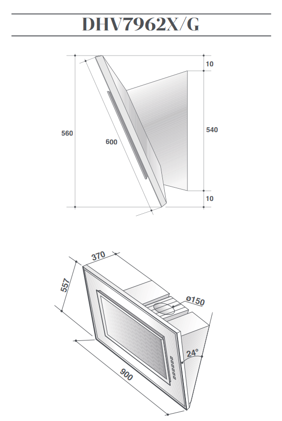 De Dietrich DHV7962X - схема с размерами к вытяжке на разных языках на Hausdorf