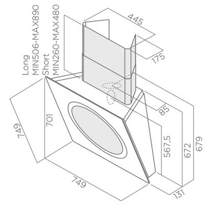 Elica OM AIR BEAUTY/F/75 - схема с размерами к вытяжке на разных языках на Hausdorf