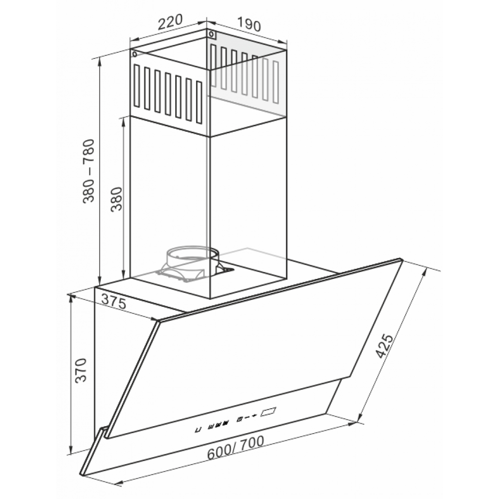 Kaiser AT 6410 F Eco - схема с размерами к вытяжке на разных языках на Hausdorf