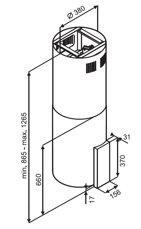 Kuppersberg MOTUBA X - схема с размерами к вытяжке на разных языках на Hausdorf