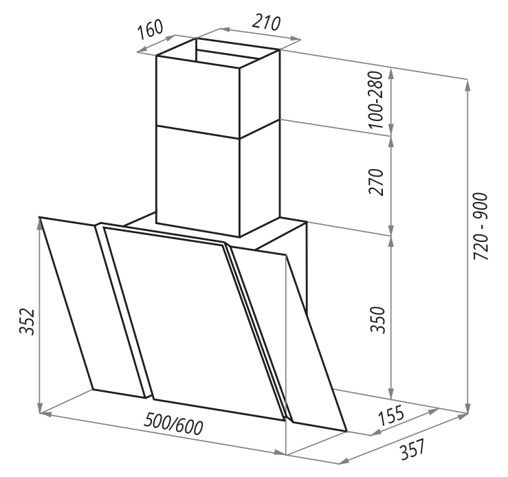 Maunfeld TRENT 60 BLACK GLASS B - схема с размерами к вытяжке на разных языках на Hausdorf