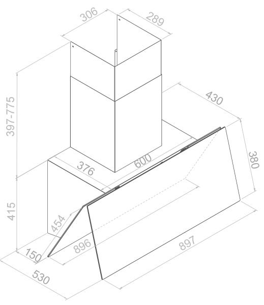 Pando P-725/90 CR.NEGRO 850 - схема с размерами к вытяжке на разных языках на Hausdorf