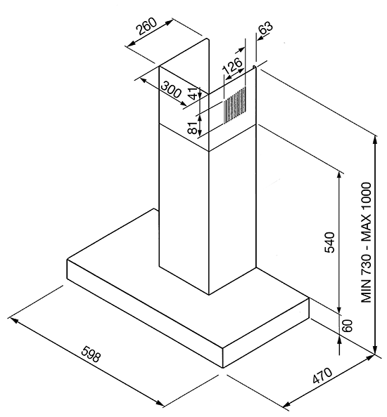 Smeg KSE60X3 - схема с размерами к вытяжке на разных языках на Hausdorf